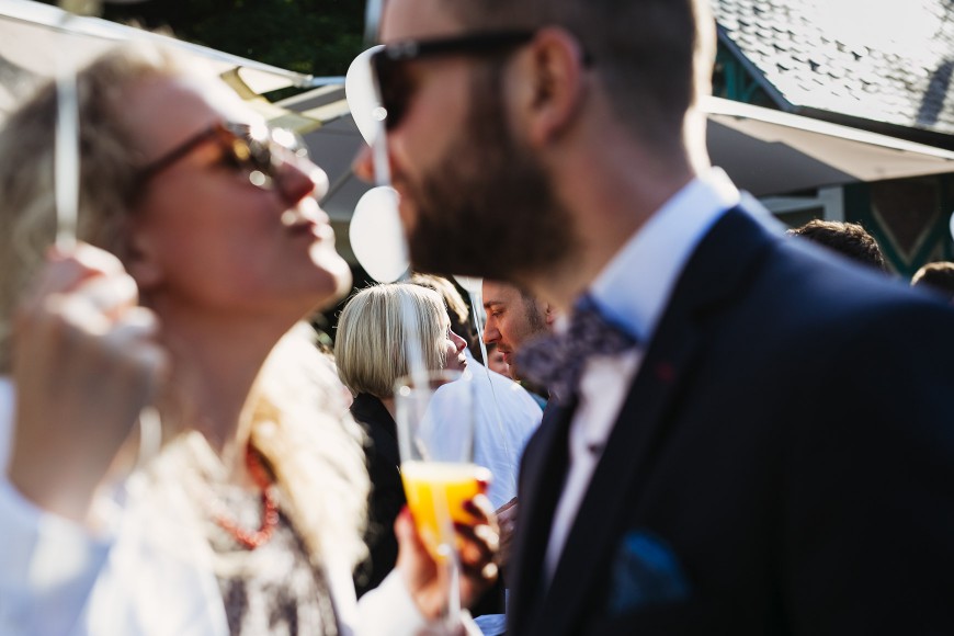 Eine Hochzeit ohne Lachen und Spaß gibt es nicht. Ungezwungene Hochzeitsbilder spiegeln die Atmosphäre und die Stimmung des Hochzeitstages viel besser, als makellose Portraits, wider. In diesem Sinne, Mut zur Freiheit, im Jazz-Stil ist alles erlaubt!